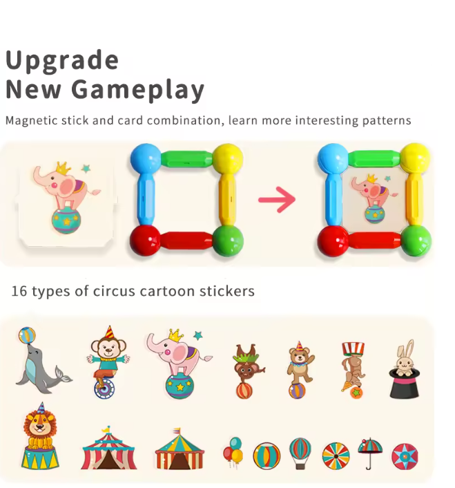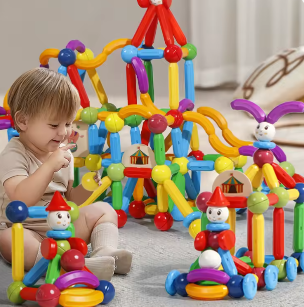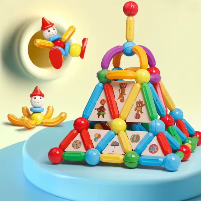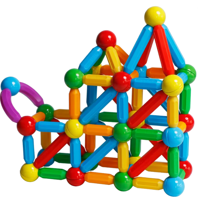 Acest set de construcție cu bețe și bile magnetice stimulează imaginația și creativitatea copiilor. Designul magnetic permite realizarea de forme 2D și structuri 3D, ajutând la dezvoltarea gândirii spațiale.